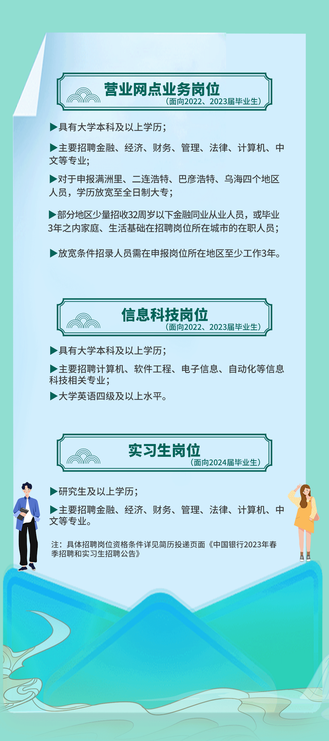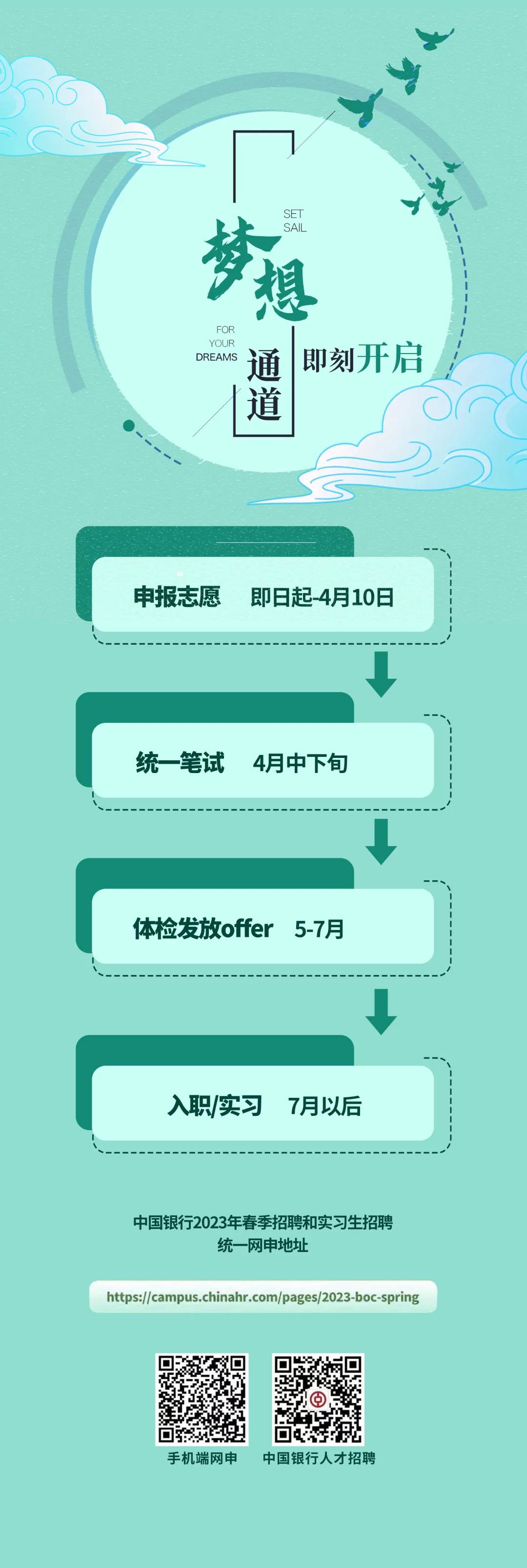 中國(guó)銀行內(nèi)蒙古區(qū)分行2023年春季招聘和實(shí)習(xí)生招聘全面啟動(dòng)!