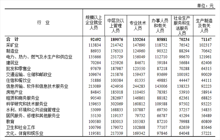 2022年分區(qū)域分崗位就業(yè)人員年平均工資。圖片來源:國家統(tǒng)計(jì)局官網(wǎng)