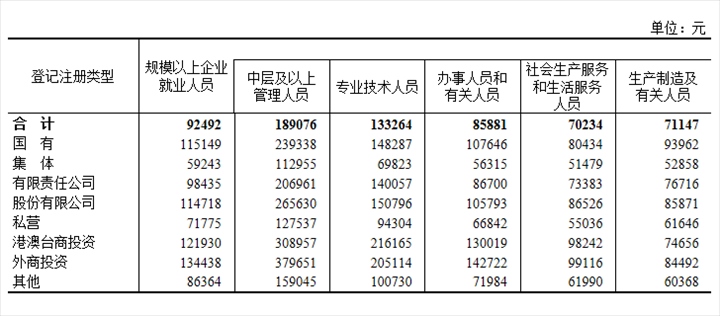2022年分登記注冊類型分崗位就業(yè)人員年平均工資。圖片來源:國家統(tǒng)計(jì)局官網(wǎng)