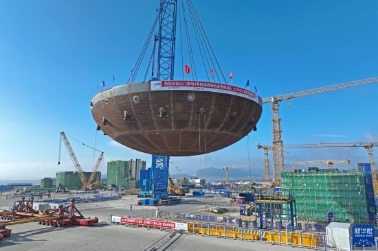 5月29日,在浙江省臺州市三門縣,三門核電二期工程4號機組核島鋼制安全殼底封頭順利吊裝就位。這是4號機組核島反應(yīng)堆廠房吊裝的首個大型模塊,標志著該廠房主體結(jié)構(gòu)施工開始。三門核電二期工程4號機組于3月22日開工,整個二期工程建成投產(chǎn)后,一、二期裝機總?cè)萘繉⑦_到500萬千瓦,年發(fā)電量預計可達到400億千瓦時。