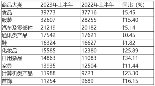 在具體商品投訴中,投訴量居前五位的分別為(如圖4、表4所示)食品、服裝、汽車及零部件、通訊類產(chǎn)品、鞋。與2022年上半年相比,日用雜品、化妝品、計(jì)算機(jī)類產(chǎn)品投訴量增長(zhǎng)較高。