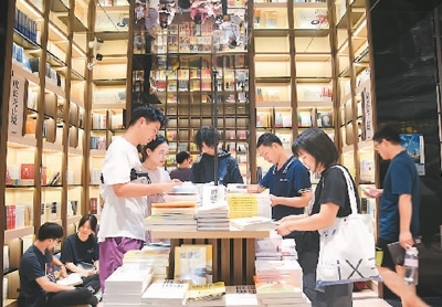 8月3日,安徽省合肥市包河區(qū)塘溪津門水街鐘書閣書店,讀者在選購、閱讀書籍。該書店是鐘書閣合肥首店,于今年7月28日開業(yè),店內(nèi)藏書近7萬冊,吸引大量市民游客打卡。方 好攝(人民圖片)