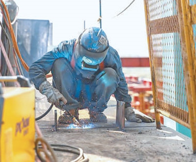 中午時(shí)分,橋面溫度高達(dá)50多攝氏度。工人們身著工服,汗水浸透了里衣。他們冒著高溫,揮動(dòng)扳手,將一顆顆螺栓施擰到位。