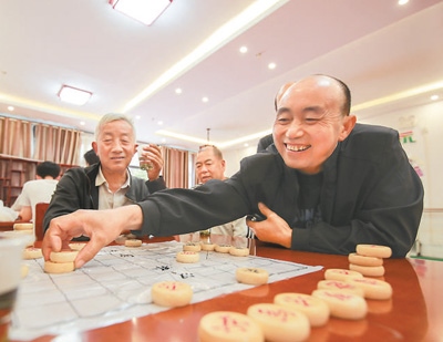 貴州省黔東南苗族侗族自治州岑鞏縣在新型城鎮(zhèn)化建設中,大力建設社區(qū)服務中心、圖書室等場所,完善服務功能,提升群眾幸福感。圖為社區(qū)居民在該縣大有鎮(zhèn)大坪同心社區(qū)下象棋。