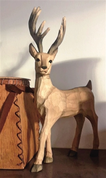 在呼倫貝爾市鄂倫春自治旗一處民族工藝品廠內(nèi),數(shù)十只雕刻完成的木制小鹿擺放得整整齊齊,這是筆插擺件上的重要裝飾品,鄂倫春族手工藝人何國(guó)志正在細(xì)心雕刻其中一只。問(wèn)道為什么雕刻鹿,而不是別的?他說(shuō):“興安神鹿是鄂倫春族的向往,看到它就看到了希望?!?/p>