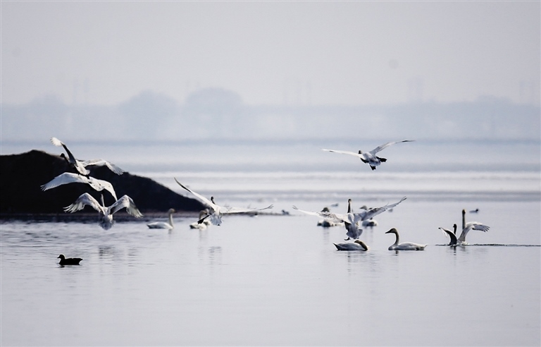 “現(xiàn)在湖面上的候鳥也就1萬多只,等到4月份的時(shí)候,候鳥才會(huì)大量歸來,屆時(shí)湖面上將出現(xiàn)4~5萬只候鳥集聚的畫面,很是壯觀?!蓖鯊?qiáng)每每說起候鳥都很感慨,他說,隨著環(huán)境變好,候鳥越來越多,去年更是首次出現(xiàn)了紅腿鶴。為了保護(hù)候鳥安全過境,他們從2月中旬開始24小時(shí)不間斷巡視,并走街串戶進(jìn)行保護(hù)野生動(dòng)物的宣傳,突擊檢查轄區(qū)內(nèi)餐飲企業(yè),確保不會(huì)出現(xiàn)濫食野生動(dòng)物的現(xiàn)象。同時(shí),森林公安部門還在網(wǎng)上排查,嚴(yán)打網(wǎng)上交易野生動(dòng)物行為。