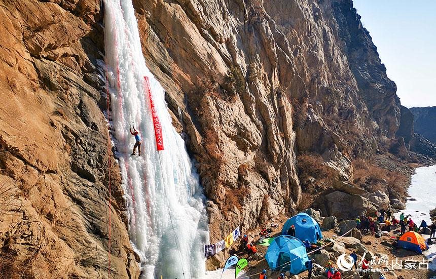 1月16日,由內(nèi)蒙古登山協(xié)會、內(nèi)蒙古攀巖攀冰協(xié)會聯(lián)合舉辦的內(nèi)蒙古第七屆攀冰交流大會在包頭市土默特右旗舉行,來自內(nèi)蒙古各地的攀冰愛好者和戶外運動愛好者在晶瑩剔透的冰瀑上挑戰(zhàn)自我,感受極限運動帶來的樂趣。(丁根厚)