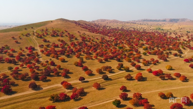 央廣網(wǎng)興安10月18日消息(記者 王秋蕾) 十月的內(nèi)蒙古興安盟科右中旗天高云淡,寒露過后,隨著氣溫下降,6萬余公頃五角楓林換上盛裝,給了生命最炫目的顏色,漫山遍野,層林盡染,如詩如畫。
