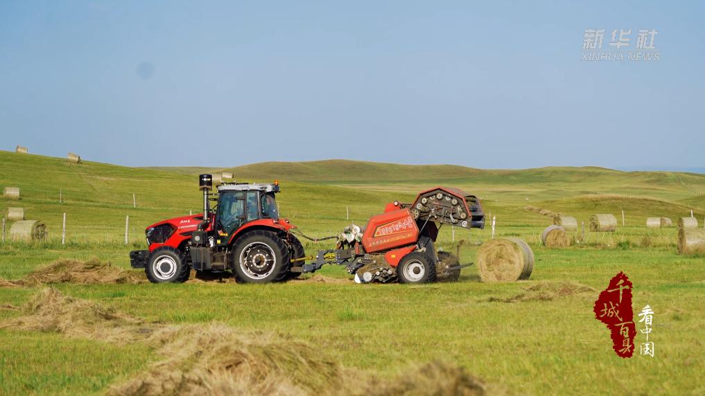 ??金秋九月,內(nèi)蒙古自治區(qū)錫林浩特市境內(nèi)的廣闊草原迎來打草關(guān)鍵期,一幅充滿創(chuàng)意的豐收圖景在遼闊天地間鋪展。往日碧浪翻滾的草原上,打捆機不停作業(yè),將鮮嫩牧草緊實裹成圓潤飽滿的大圓草捆。這些草捆形似糕點“瑞士卷”,錯落點綴在黃綠相間的草原上,既可愛又治愈,成為秋日草原的獨特景致?! ?/p>
