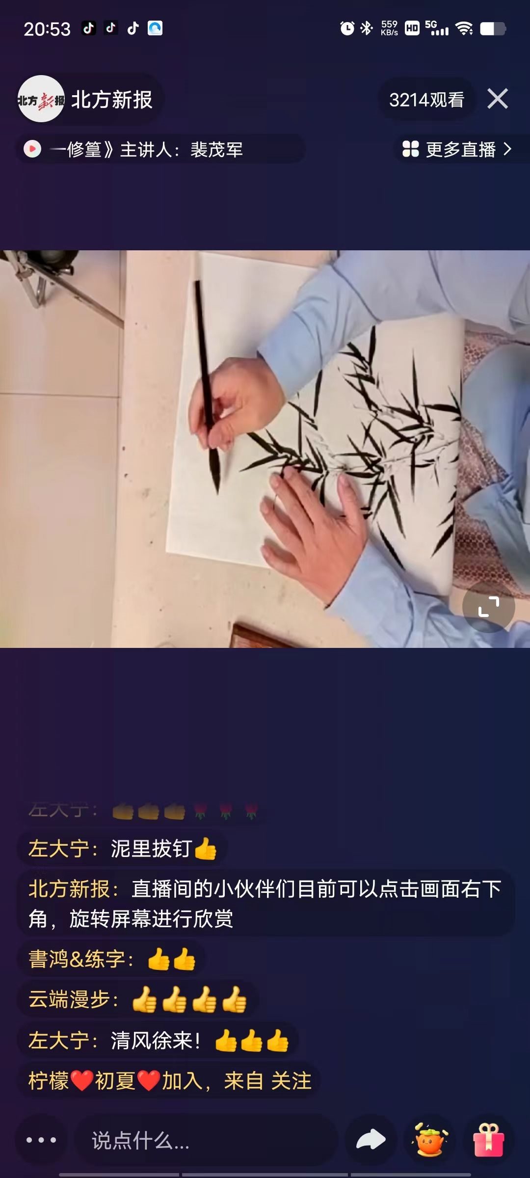 “我們這節(jié)課學(xué)習(xí)的是《明代花鳥畫一一修篁》……”10月13日晚,呼和浩特市書畫院花鳥畫講師裴茂軍線上課程開講,給廣大美術(shù)愛好者帶來一節(jié)有趣且實(shí)用的課程,備受網(wǎng)友喜歡。