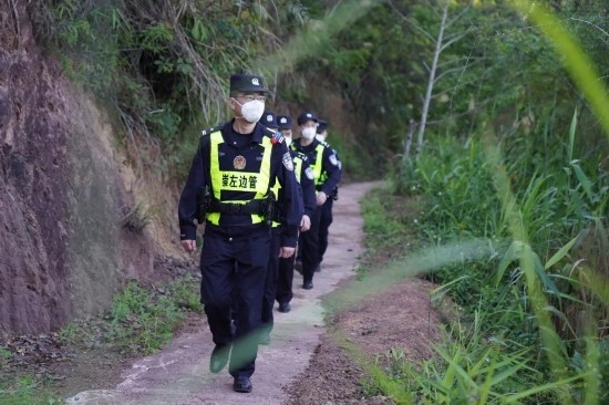2021年3月,黃日所在的專案組掌握到一個重要信息,一個運送人員非法入境的犯罪團伙正在崇左天等縣秘密轉(zhuǎn)運人員。“必須要把這伙犯罪分子裝進‘袋子’里!”黃日和戰(zhàn)友們通過縝密偵查,最終決定在天等縣和大新縣接壤的一段窄路上設(shè)伏。