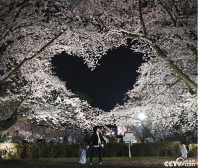當(dāng)?shù)貢r(shí)間4月15日,日本青森縣弘前市弘前公園的櫻花進(jìn)入盛開(kāi)季。其中,有兩株盛開(kāi)的櫻花樹(shù)枝相互交織,在空中形成了一個(gè)愛(ài)心形狀,成為熱門(mén)觀光景點(diǎn)。