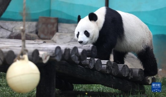 6月26日,“剛剛”在鞍山動(dòng)物園熊貓館里悠閑散步。