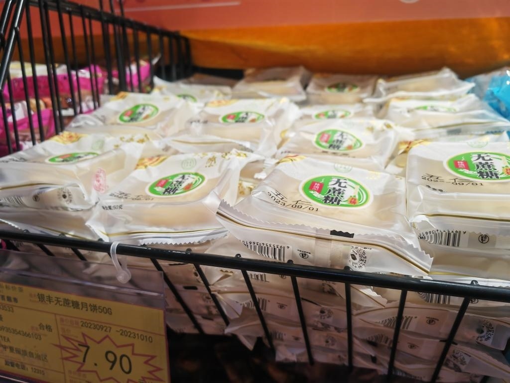 超市內(nèi)銷(xiāo)售的無(wú)蔗糖月餅。新華社記者 蘇醒 攝