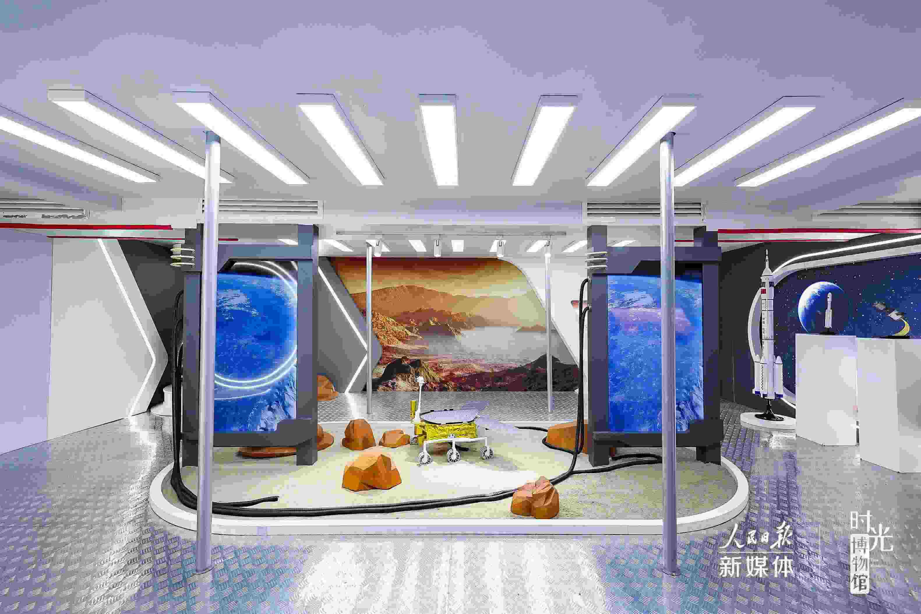 在“星辰大?!闭箙^(qū),航天器模型+視頻演示模擬真實(shí)的太空?qǐng)鼍?,?fù)古電視機(jī)循環(huán)播放過去30年的航天大事件?!吧裰邸憋w天、“天宮”遨游、“嫦娥”攬?jiān)?、“祝融”探火……將浪漫灑向宇宙,?gòu)成了中國(guó)人獨(dú)有的星辰大海。