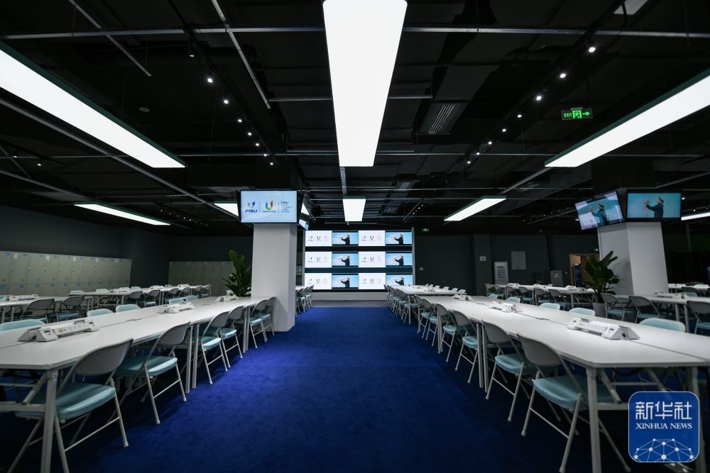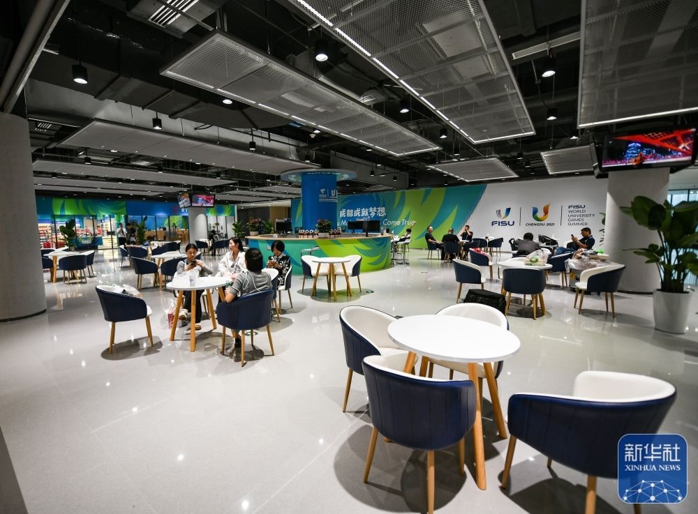 ?↑這是7月13日拍攝的成都大運會主媒體中心的會客廳。新華社記者 王曦 攝