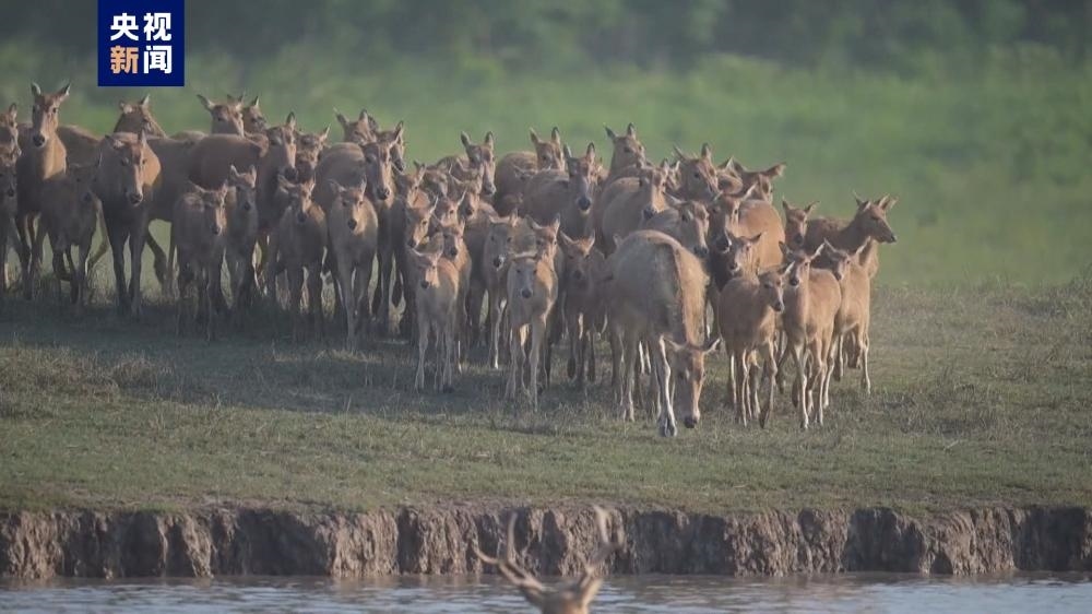 麋鹿寶寶扎堆,位于湖北荊州的石首麋鹿國家級自然保護區(qū)新生麋鹿達(dá)460頭。目前,保護區(qū)內(nèi)的麋鹿種群數(shù)量已經(jīng)達(dá)到近2000頭。
