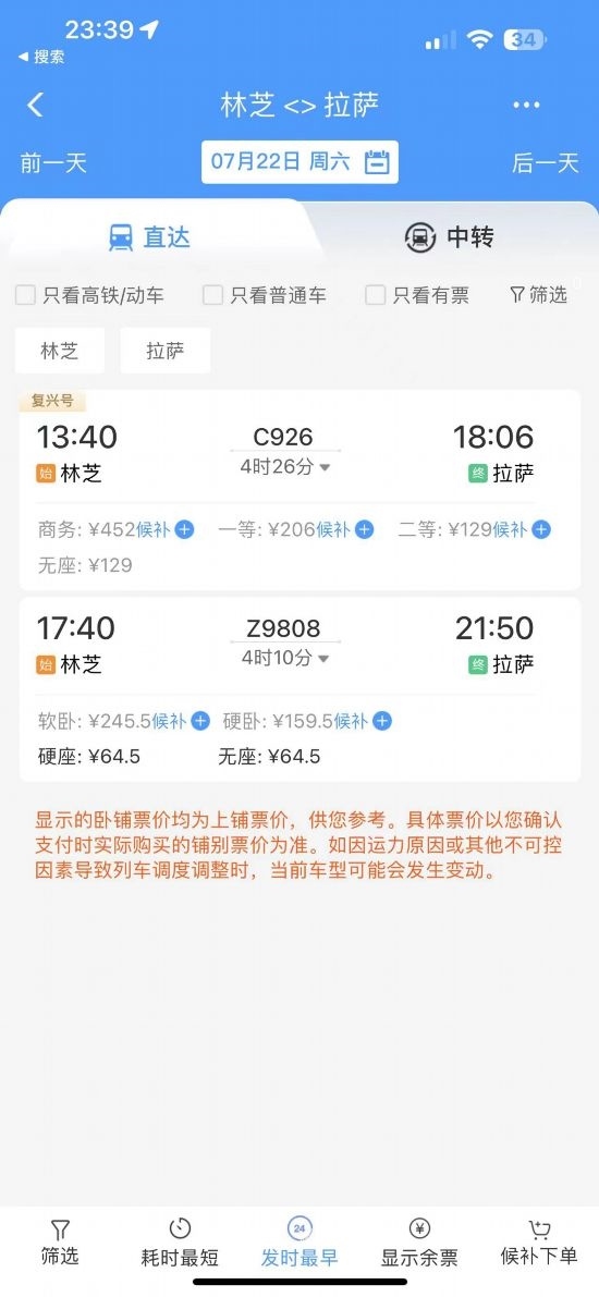 通過在鐵路售票APP上查詢發(fā)現(xiàn),從林芝開往拉薩的復(fù)興號城際列車的二等座票價為129元,直達(dá)特快列車硬座為64.5元。“相比較原先180元的客運(yùn)汽車票價,直達(dá)特快列車便宜了近乎三分之一?!辈芟壬锌卣f道。