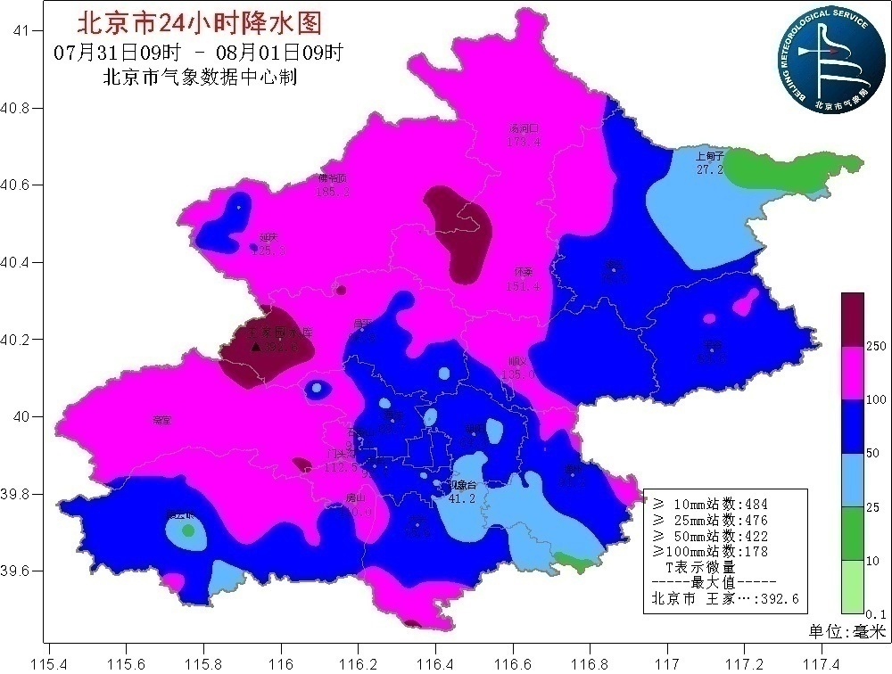 據北京市氣象臺消息,29日20時至8月1日7時,北京地區(qū)全市平均降雨量260.0毫米,城區(qū)平均235.3毫米,房山區(qū)平均415.4毫米,門頭溝區(qū)平均471.1毫米;最大小時雨強出現在豐臺千靈山,31日10-11時111.8毫米/小時。