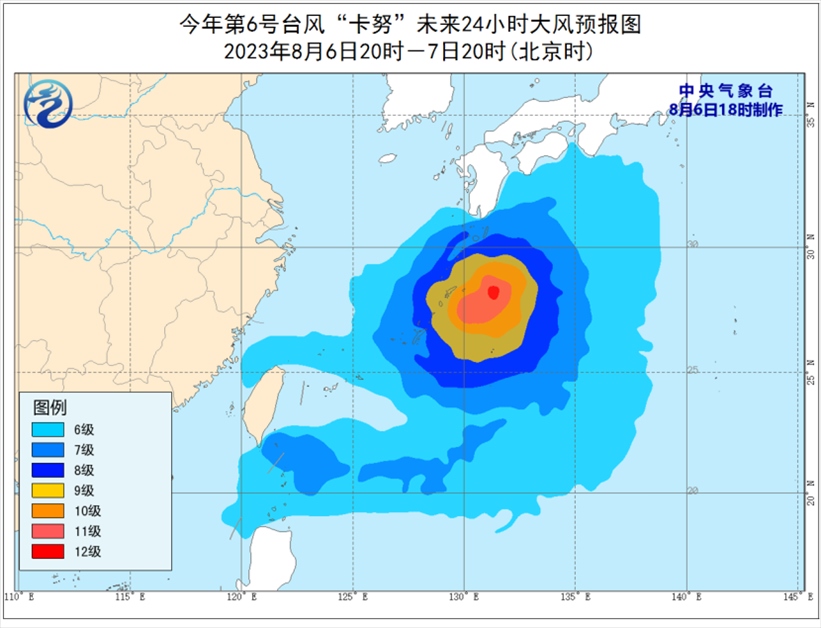 大風(fēng)預(yù)報(bào):8月6日20時(shí)至7日20時(shí),巴士海峽、臺灣海峽北部、臺灣以東洋面、東海南部和東部及釣魚島附近海域?qū)⒂?-8級、陣風(fēng)9-10級的大風(fēng),其中東海東部部分海域風(fēng)力可達(dá)9-10級,陣風(fēng)11-12級。