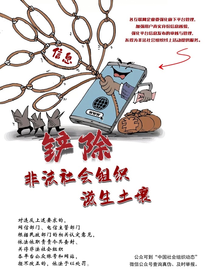 人民網(wǎng)北京8月7日電 近日,民政部社會組織管理局圍繞近期發(fā)生的非法社會組織活動進行提醒,要求各地各相關部門進一步提高政治站位,確保打擊整治工作落到實處。公眾可到“中國社會組織動態(tài)”微信公眾號查詢真?zhèn)?、及時舉報。(宋子節(jié) 實習生李珂)