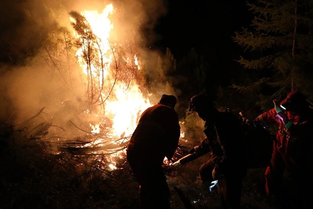 根據(jù)火場(chǎng)態(tài)勢(shì),撲火前線指揮部科學(xué)制定撲滅火戰(zhàn)術(shù),先后投入6000多名兵力奮戰(zhàn)火場(chǎng)一線。調(diào)動(dòng)直升機(jī)空中實(shí)施吊桶滅火,開辟了多個(gè)臨時(shí)機(jī)降點(diǎn)運(yùn)送兵力和給養(yǎng)。調(diào)集推土機(jī)、挖掘機(jī)、裝甲運(yùn)兵車等大型機(jī)械設(shè)備和各類撲火工器具投入火場(chǎng)前線。撲火隊(duì)員克服地形、植被、天氣等不利因素,在火場(chǎng)無(wú)降水的條件下,連續(xù)奮戰(zhàn),實(shí)現(xiàn)火場(chǎng)全線合圍?! ?/p>