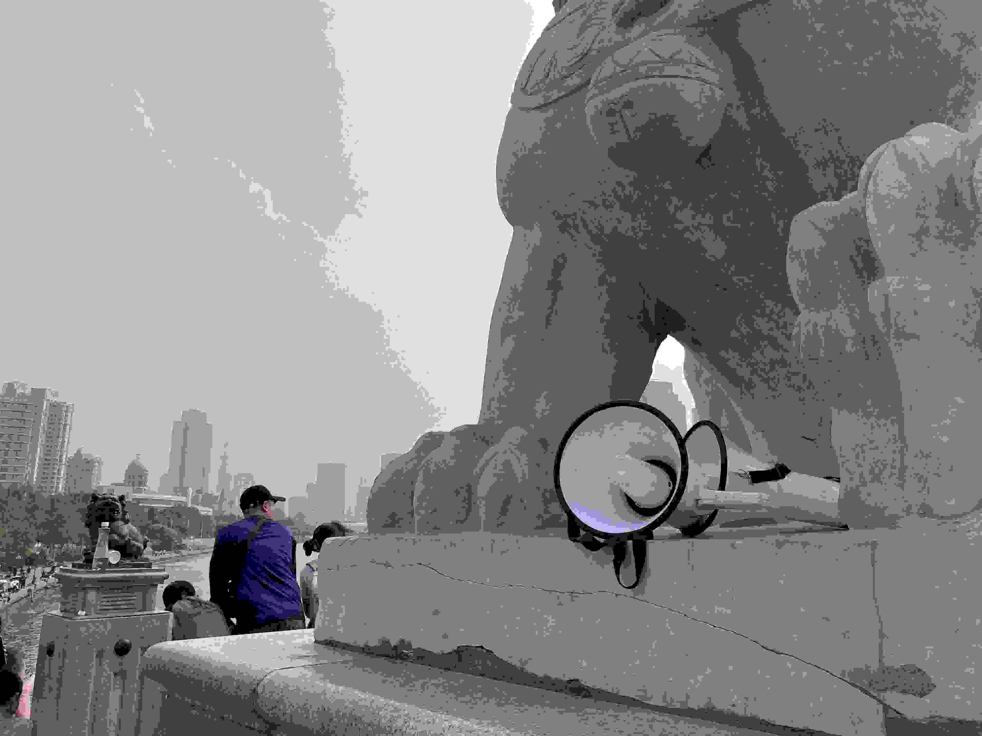 ▲獅子林橋橋頭循環(huán)播放勸阻大家不要跳水的喇叭