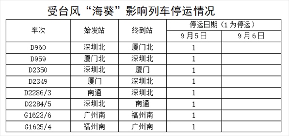 臺風(fēng)“海葵”登陸 南鐵動態(tài)調(diào)整旅客列車運行方案