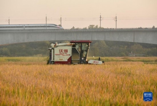 10月18日,湖南省衡陽市衡山縣白果鎮(zhèn),農(nóng)民在收割晚稻。
