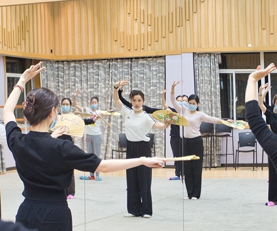 一些年輕人在夜校學習淮劇團團扇課程。上海市群眾藝術館供圖