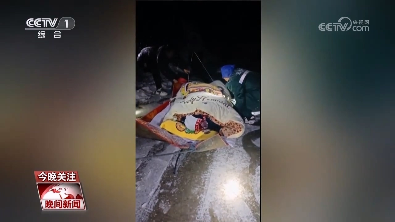 大家找來地毯和棉絮,做了一張雪地臨時急救床,再鋪上厚被子為孕婦做好保暖,盡管一步一滑、頻頻摔倒,但大家齊心協力,在雪地里拖行400米,終于將產婦安全送上救護車。