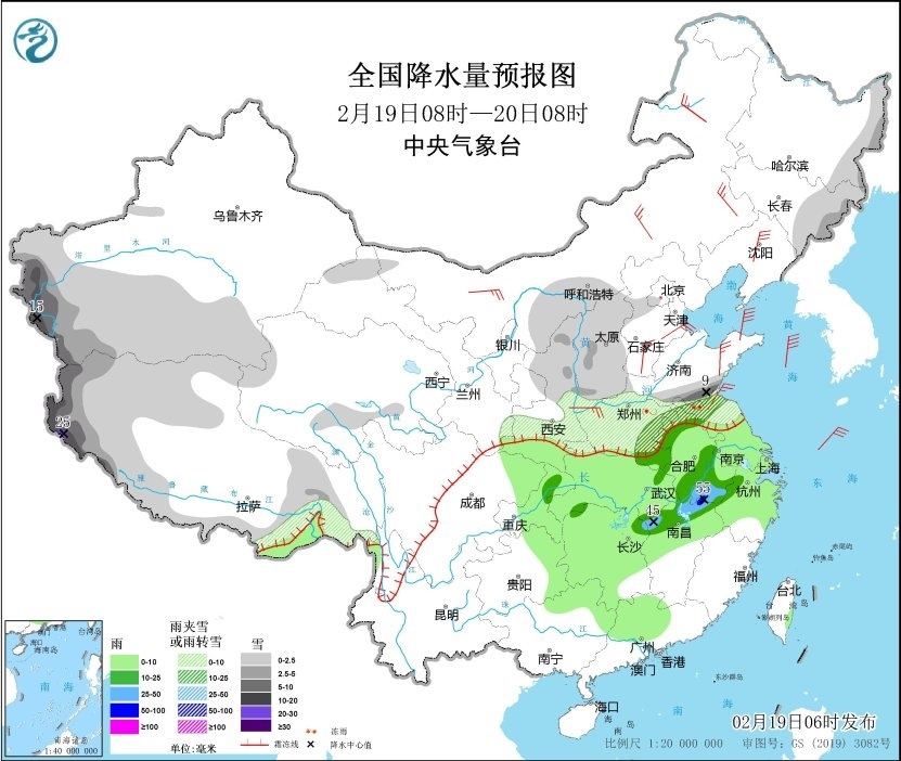 2月19日至22日,中東部地區(qū)將再現(xiàn)大范圍雨雪冰凍天氣。華北西部和南部、黃淮等地有大到暴雪,局地大暴雪;南方雨勢(shì)強(qiáng),并伴有雷暴、短時(shí)強(qiáng)降水和冰雹等強(qiáng)對(duì)流天氣。河南、安徽、湖北、湖南、貴州等地的部分地區(qū)將先后出現(xiàn)凍雨或冰粒。