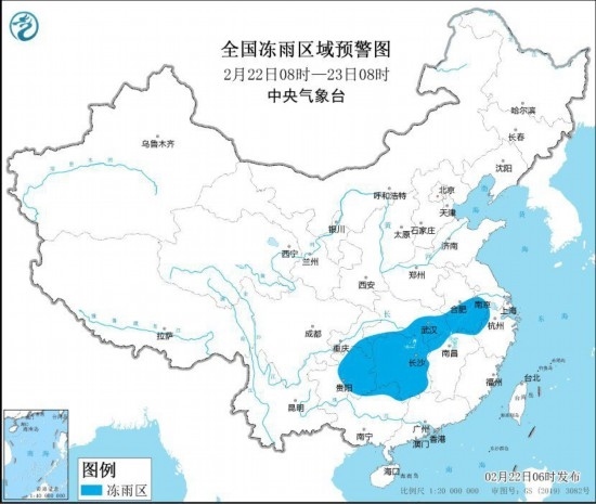 預(yù)計,2月22日8時至23日8時,陜西南部、安徽中部、湖北中東部、四川盆地東北部以及西藏東部、青海南部、云南西北部等地部分地區(qū)有大雪,其中,西藏東南部、湖北東部等地部分地區(qū)有暴雪(10~15毫米)。上述部分地區(qū)新增積雪深度3~6厘米,局地可達8~10厘米;安徽中南部、江蘇西南部、浙江西北部、湖北中東部和南部、湖南大部、江西西北部、貴州東部、重慶東南部等地的部分地區(qū)有凍雨或冰粒,凍雨量1~5毫米,局地10毫米以上。中央氣象臺2月22日6時繼續(xù)發(fā)布暴雪黃色預(yù)警和冰凍黃色預(yù)警。廣西東北部、湖南南部、江西中北部、浙江、福建西北部、廣東中西部和西南部沿海等地的部分地區(qū)有中到大雨,局地伴有雷暴。
