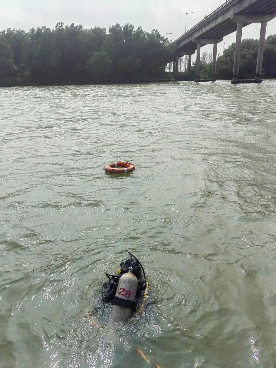 據(jù)南海救助局廣州救助基地現(xiàn)場救助指揮貝承璋介紹,救助現(xiàn)場因大橋橋埻出現(xiàn)明顯破損,墜落入水的水泥、鋼筋等雜物對水下搜尋作業(yè)增加一定風(fēng)險,加之事發(fā)水域水流流速較大,車輛及人員落水后,水下搜尋面積大,給救助工作增加一定難度。