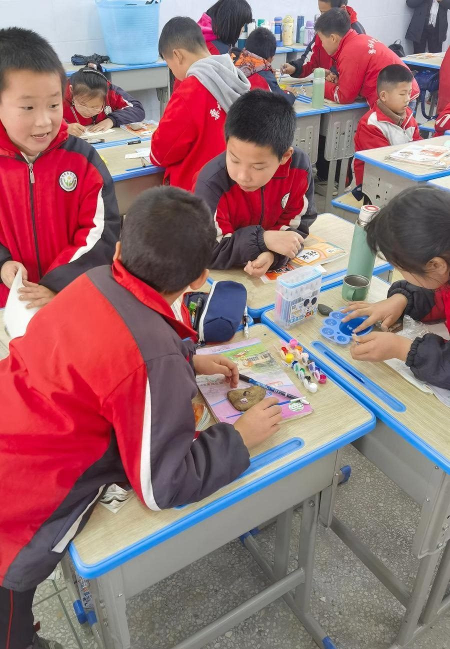 美術(shù)課上,李柏霖讓孩子們?cè)谑^上作畫