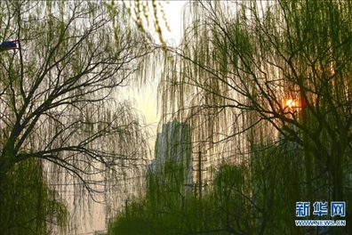 圖二:河南省民權(quán)縣綠洲街道濱河兩岸楊柳吐綠(來源:新華社)