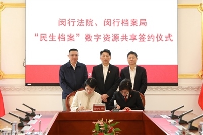 上海閔行區(qū)法院與閔行區(qū)檔案局簽署“民生檔案”數(shù)字資源共享協(xié)議。顧穎婷 攝