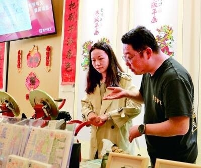 游客在襄陽古城管家巷體驗老河口木版年畫文創(chuàng)產(chǎn)品制作。本報記者 郭冠東攝