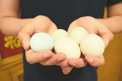 “你摸摸”,說著,盧大爺把雞蛋遞了過來。一摸,還熱乎著!盧大爺邊說,邊把雞蛋放進(jìn)鍋里煮。“這是剛下的綠皮雞蛋,是五彩蛋雞下的?!?/P>