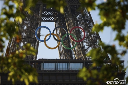 當(dāng)?shù)貢r(shí)間2024年6月7日,在巴黎奧運(yùn)會開幕倒計(jì)時(shí)50天之際,奧運(yùn)五環(huán)被安裝在巴黎埃菲爾鐵塔上。