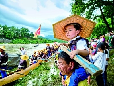 每年農(nóng)歷五月,在貴州省黔東南苗族侗族自治州的清水江流域,當(dāng)?shù)氐拿缱迦罕姸紩?huì)舉辦苗族獨(dú)木龍舟節(jié)。龍舟節(jié)以水上龍舟競渡為載體,融合了苗族服飾文化、歌舞文化、飲食文化等,數(shù)百年經(jīng)久不衰,沿襲至今。2008年,苗族獨(dú)木龍舟節(jié)便被列入第二批國家級非物質(zhì)文化遺產(chǎn)代表性項(xiàng)目名錄。