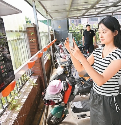 圖為市民在山東省膠州市九龍街道臨水宜家小區(qū)一電動(dòng)自行車充電點(diǎn)掃碼充電。新華社記者 李紫恒攝