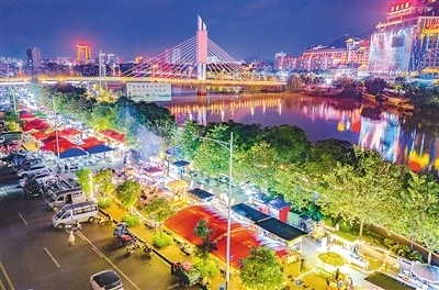 近年來,廣西壯族自治區(qū)賀州市不斷豐富夜間經(jīng)濟消費業(yè)態(tài),滿足市民多樣化消費需求,助推城市經(jīng)濟煥發(fā)新活力。圖為近日,市民和游客在賀州市城區(qū)江南中路夜市休閑游玩。黎豪圖攝(人民視覺)