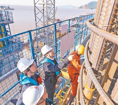 西堠門(mén)公鐵兩用大橋墩身施工現(xiàn)場(chǎng)。弋鵬麗攝