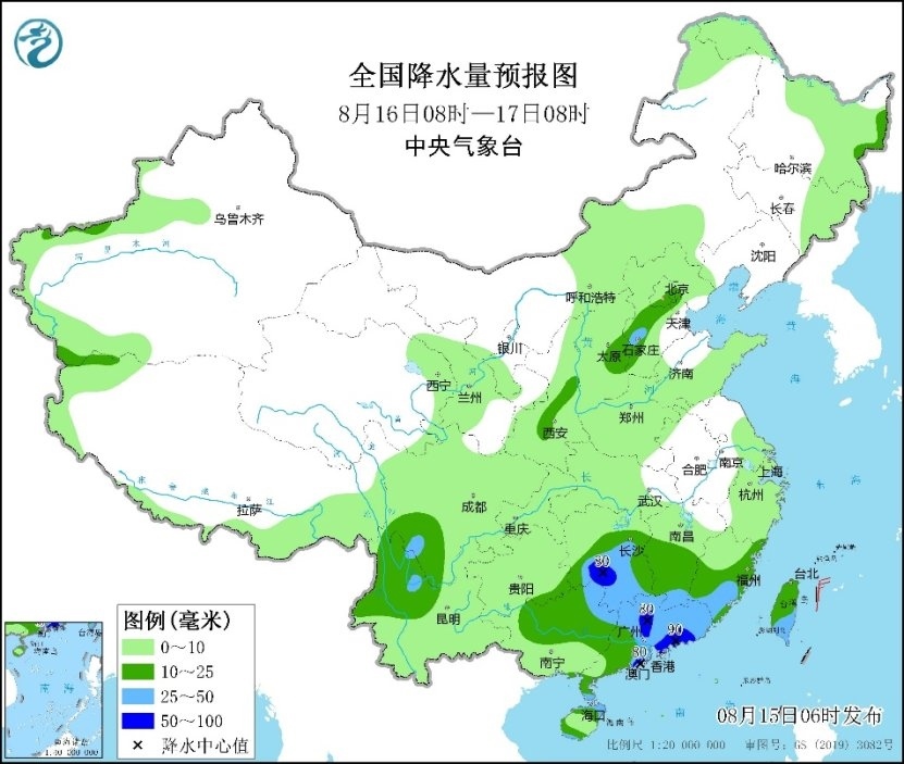 未來三天,江南南部、華南及四川盆地等地部分地區(qū)有分散性強降雨,并伴有強對流天氣,降雨強度大;西北地區(qū)東部、內(nèi)蒙古、華北、東北地區(qū)、黃淮等地有一次降雨過程,青海、甘肅、寧夏、陜西等地部分地區(qū)已出現(xiàn)較強降雨,需防范持續(xù)降雨和局地短時強降雨可能引發(fā)的次生災(zāi)害。由于副熱帶高壓減弱和降雨鋪展,高溫明顯減弱。高溫主要集中在四川盆地,湖北、湖南、浙江、江蘇等地雖有高溫,但范圍較小。