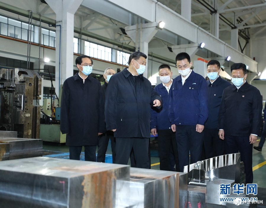 3月29日至4月1日,中共中央總書記、國家主席、中央軍委主席習(xí)近平在浙江考察。這是3月29日,習(xí)近平在寧波北侖大碶高端汽配模具園區(qū)考察中小型民營制造業(yè)企業(yè)寧波臻至機(jī)械模具有限公司,聽取企業(yè)生產(chǎn)經(jīng)營及復(fù)工復(fù)產(chǎn)情況介紹。 新華社記者 鞠鵬 攝