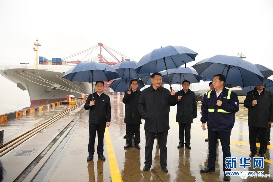 3月29日,習(xí)近平前往寧波舟山港穿山港區(qū)考察。穿山港區(qū)采取措施及早恢復(fù)生產(chǎn),港口吞吐量已逐步恢復(fù)至日常水平。在業(yè)務(wù)調(diào)度大廳,習(xí)近平聽取了港區(qū)情況和復(fù)工復(fù)產(chǎn)情況匯報(bào)。在一樓大廳,習(xí)近平同港口職工代表親切交流,對他們表示慰問。習(xí)近平強(qiáng)調(diào),寧波舟山港率先恢復(fù)生產(chǎn),對推動(dòng)我國企業(yè)復(fù)工復(fù)產(chǎn)、恢復(fù)物流體系、恢復(fù)全球產(chǎn)業(yè)鏈具有重要意義。要未雨綢繆,關(guān)注境外疫情形勢,在堅(jiān)持不懈抓好疫情防控的同時(shí),積極應(yīng)對和化解各國為抗擊疫情采取的各項(xiàng)限制性措施對貨物航運(yùn)帶來的影響,促進(jìn)我國出口貨物出得去、進(jìn)口貨物進(jìn)得來。習(xí)近平希望他們努力克服疫情影響,爭取優(yōu)異成績。