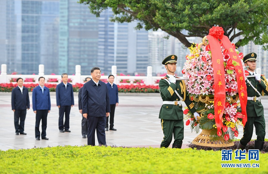 10月14日,深圳經(jīng)濟特區(qū)建立40周年慶祝大會在廣東省深圳市隆重舉行。中共中央總書記、國家主席、中央軍委主席習近平在會上發(fā)表重要講話。這是當天下午,習近平來到蓮花山公園,向鄧小平同志銅像敬獻花籃。 新華社記者 王曄 攝