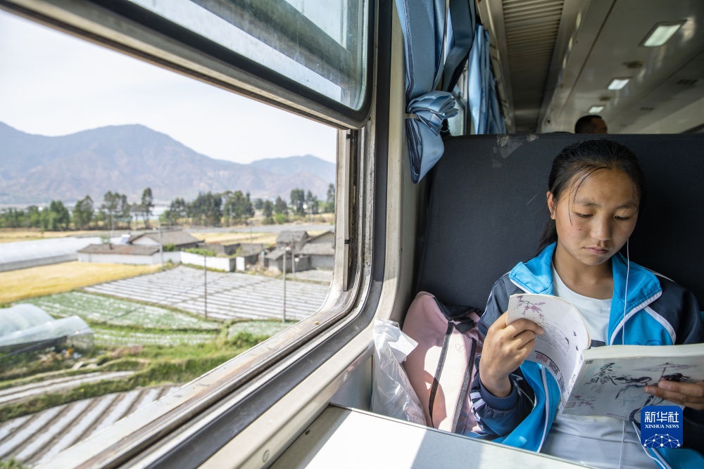 2021年4月15日,一名喜德縣瓦爾學(xué)校的學(xué)生乘坐5634次列車(chē)回家。5633/5634次列車(chē)被人們親切地稱(chēng)為“慢火車(chē)”,陪伴著四川大涼山地區(qū)幾代人的成長(zhǎng),是百姓外出的“公交列車(chē)”,也是孩子們求學(xué)的“校車(chē)”。新華社記者 沈伯韓攝