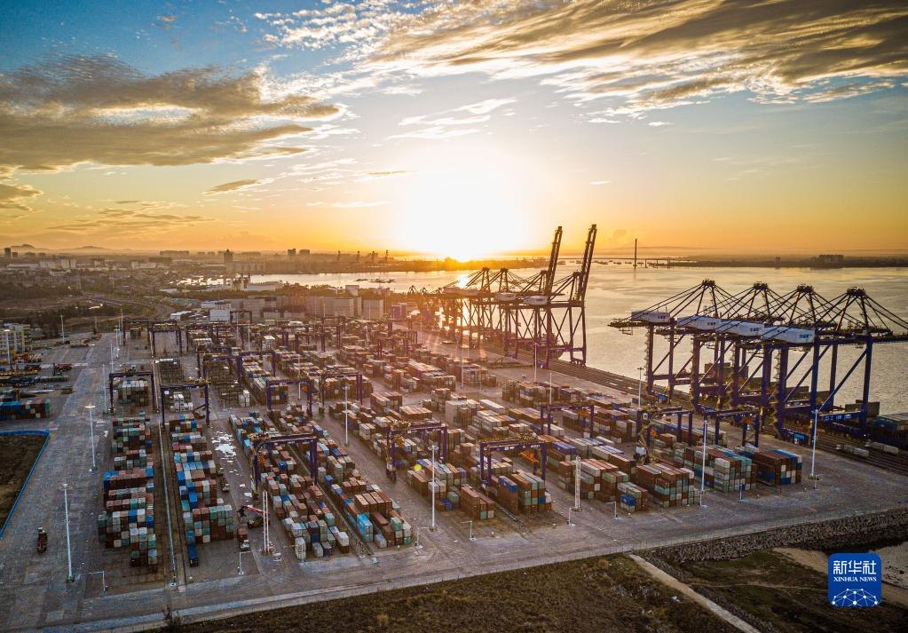 這是2021年5月26日在海南洋浦經(jīng)濟(jì)開發(fā)區(qū)拍攝的洋浦國際集裝箱碼頭(無人機(jī)照片)。新華社記者 蒲曉旭 攝